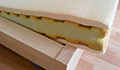Per la prima volta, ho visto il letto Oddal della compagnia di Ikea, mi è davvero piaciuto, mi sono sdraiato, sono saltato, mi sono seduto e ho capito che ne volevo uno. Inoltre, il colore del wengè si adatta perfettamente al nostro interno. Inoltre mi è piaciuta l'interessante mossa di design: sui poggiatesta ci sono scaffali per ogni tipo di dettaglio, comodo e pratico.