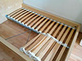 Siamo andati a Ikea e l'abbiamo comprato, mio marito lo ha assemblato da solo, le istruzioni per il loro beneficio sono molto buone. Dimensioni della "diffusione" - 160x200 cm, il letto è incredibilmente alto, sembra solido. Il fondo è il più comune - rack. Ci sono anche 4 cassetti integrati per riporre la biancheria, ma sono molto piccoli. Lì, se lo desideri, puoi stipare solo 1 cuscino o una spessa coperta.