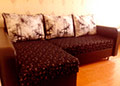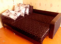We bestelden een New Yorkse bank in een donkere kleur. Blij om het te krijgen, slapen is waanzinnig comfortabel, zelfs, er zijn geen uitsteeksels en oneffen oppervlakken wanneer uitgeklapt. Onder het gewicht van het lichaam buigt het, maar slechts een beetje. Een zeer breed, groot pluspunt voor ons gezin, aangezien een dochtertje bijna elke nacht bij ons slaapt, is er genoeg ruimte voor iedereen. De doos met linnen is ruim, er is voldoende ruimte om een deken, kussens en beddengoed op te vouwen. Het kostte ongeveer 25.000 roebel.