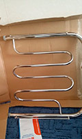 Waterverwarmd handdoekenrek van de fabrikant ENERGY, model PRESTIGE MODUS gekocht via de online winkel. Het werd op dat moment op de voorraad verkocht (met korting), daarom kostte het slechts 7700. Een garantie van 60 maanden. De droger is gemaakt van roestvrij staal, aan de bovenkant verchroomd, plus een spiegelreflectie, hij ziet er stijlvol uit en past perfect bij de rest van de mixers in mijn badkuip. De vorm lijkt op een ladder, aan de bovenkant is er een kleine plank. In feite is dit ding erg handig in het dagelijks leven, kleine dingen drogen snel op de verwarmde handdoekbeugel en op de bovenste plank is er meestal een doos met hoeden of babysokjes om te drogen. Er kan ook worden opgemerkt dat de droger de badkamer behoorlijk goed verwarmt, vanaf het moment dat deze werd geïnstalleerd, was ik helemaal vergeten wat een koud bad is, nu zijn we altijd warm. In het dagelijks leven is een verwarmd handdoekenrek gewoon nodig, ik weet niet hoe ze het vroeger zonder deden.