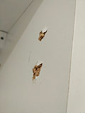Ușa căzu pe un dulap, care era deschis cel mai bine o dată pe lună. Aparent, acesta a căzut sub propria greutate, din cauza șuruburilor scurte de auto-atingere pe care a fost înșurubat.